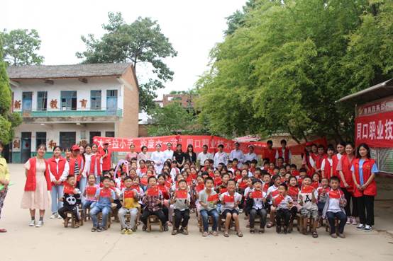 为庆祝“六一”国际儿童节,5月30日上午,周口职业技术学院的大学生志愿者走进沈丘县新安集镇三大夫营小学,大学生、小学生共同庆“六一”。
