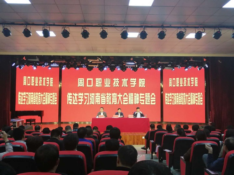 5月6日下午,周口职业技术学院召开学习贯彻全省教育大会精神会议。学校党委书记刘士欣主持会议。校长李清臣传达全省教育大会精神。学校领导班子成员和学校全体副科级干部参加会议。