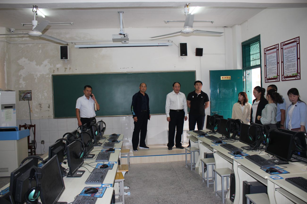 考察组对淮阳县教师进修学校的硬件和软件设置进行了现场查看。