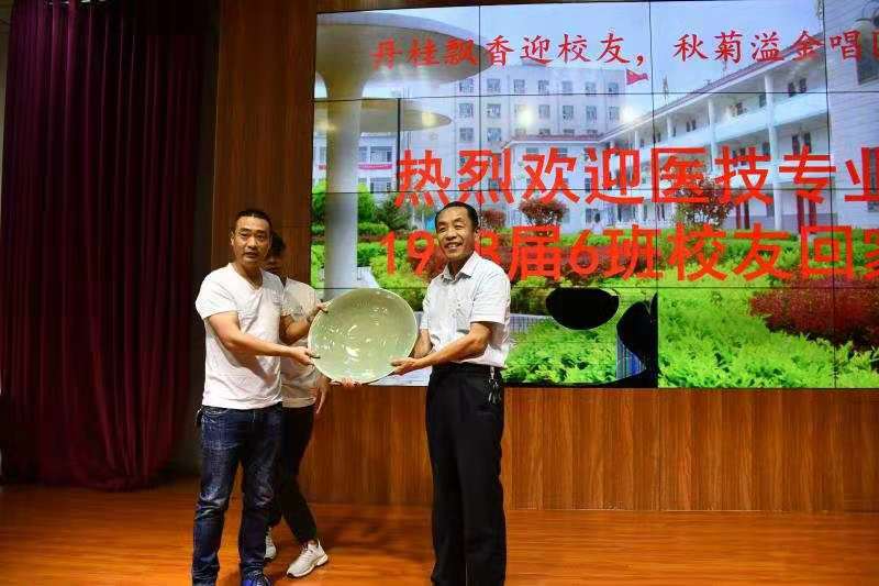 岁月如歌,忆同窗故事;前程锦绣,看桃李芬芳。2019年9月27日上午,秋高气爽,丹桂飘香,原周口卫校,今天的周口职业技术学院医学院、护理学院,迎来了当年医疗技术专业1998届6班的三十名优秀学子。周口职业技术学院校长李清臣,党委副书记李森出席欢迎仪式和座谈会,护理学院和医学院领导李明臣、于爱霞、王金玲、张建刚、武新雅、郭瑞、吴秀丽等陪同校友参观了学校。