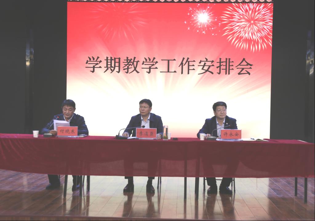 10月8日下午,学校学期教学工作安排会议在艺术与学前教育学院演播厅如期举行,校长李清臣、副校长许永安、各教学院(部)院长、主管教学的副院长、教办主任、各教研室主任以及教务处全体成员出席了会议。会议由教务处处长付晓东主持。