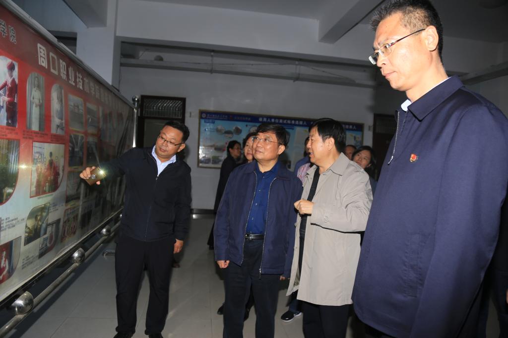 10月24日,河南省政协副主席、民建省委主委、河南中华职业教育社主任龚立群率领民建河南省委、河南中华职业教育社联合调研组一行来到我校,围绕职业教育在“稳就业”方面的突出作用等问题进行专题调研。参加调研的有河南中华职业教育社秘书长牛爱平,河南中华职业教育社第八届委员、省教育厅职业教育与成人教育处副处长李晓中,省人力资源和社会保障厅职业能力建设处副处长王浩等。周口市委常委、统战部部长赵锡昌,民建周口市委副主委、周口市统计局局长雷云,周口市委统战部副部长王琳,学校党委书记刘士欣,副校长李庶泉陪同调研。