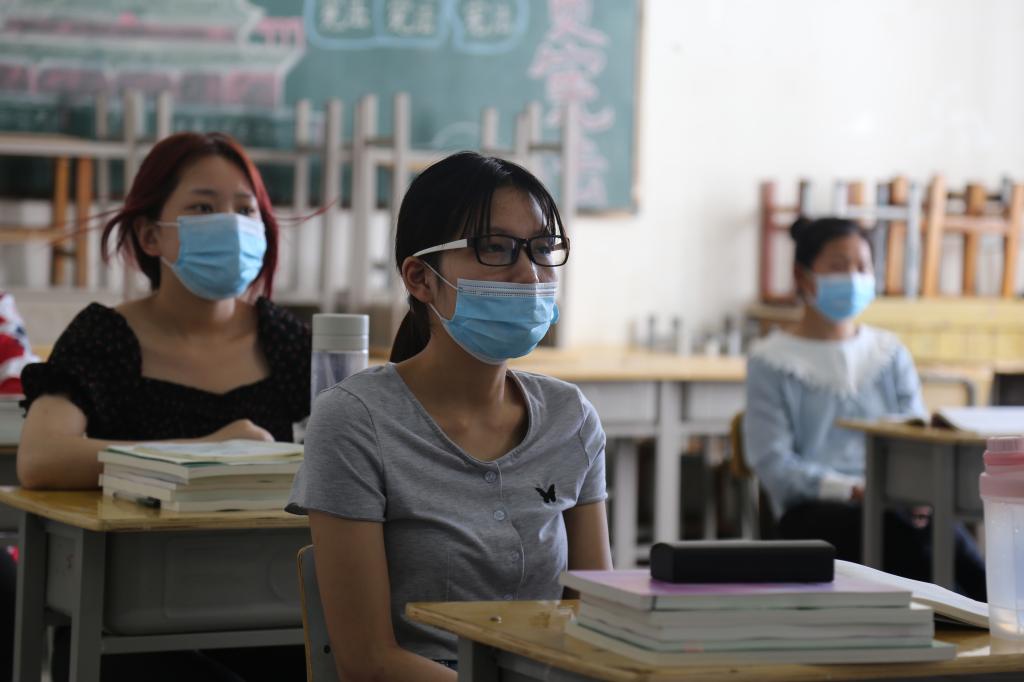 学生在教室收看全省高校“返校复学第一课”微课视频