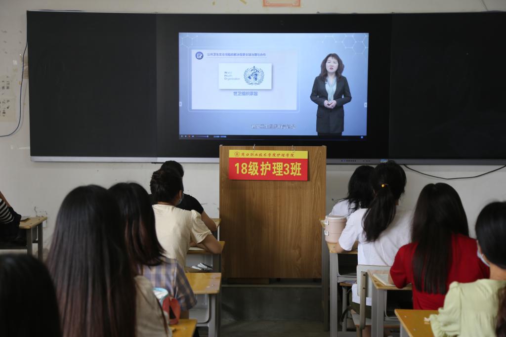 上午8时,我校医学院、护理学院首批返校学生在教室通过“电子白板教学一体机”以班级为单位集中收看由省教育厅统一录制的全省高校“返校复学第一课”微课视频。视频包括政治引领、科学普及、防护讲解、法治教育、心理疏导等5个方面。