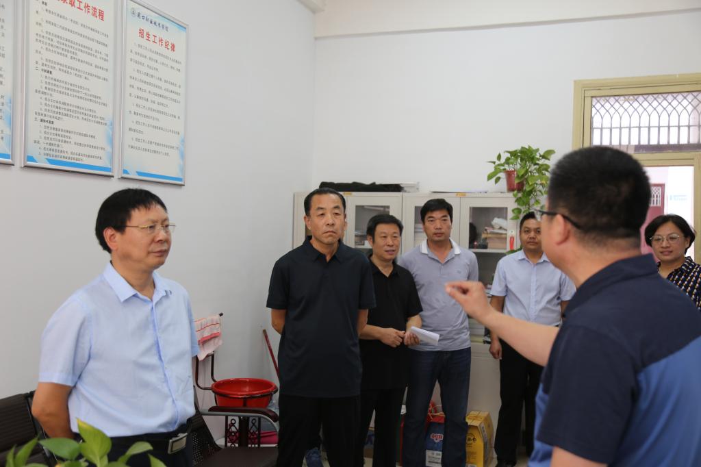 9月4日上午,校长李清臣、校党委副书记、工会主席李森带领党政办、后勤处、信息中心、教务处等相关处室人员到我校2020年招生录取工作现场,亲切看望慰问忙碌在招生录取现场的工作人员,听取招生录取工作进展情况,指导招生录取工作。