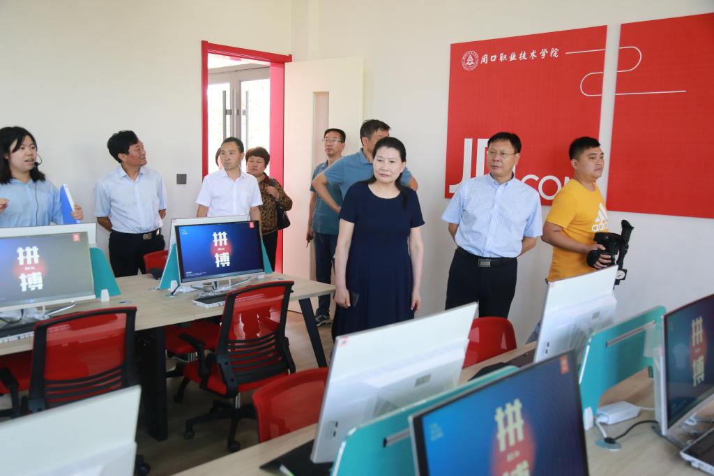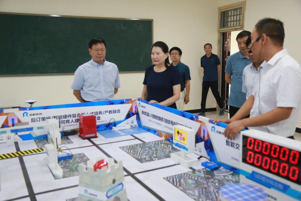 李海燕一行先后实地考察学校3D智能打印实训室、工业智能机器人实训室、嵌入技术实训室、无人机技术实训室、建筑专业实训室、京东电商人才孵化基地、体育馆等,详细了解学校人才培养、校企合作以及服务地方区域经济发展情况。校长李清臣详细介绍了我校的基本情况,对近年来所做的主要工作及取得的成绩、存在的问题和下一步打算等方面作了工作汇报。