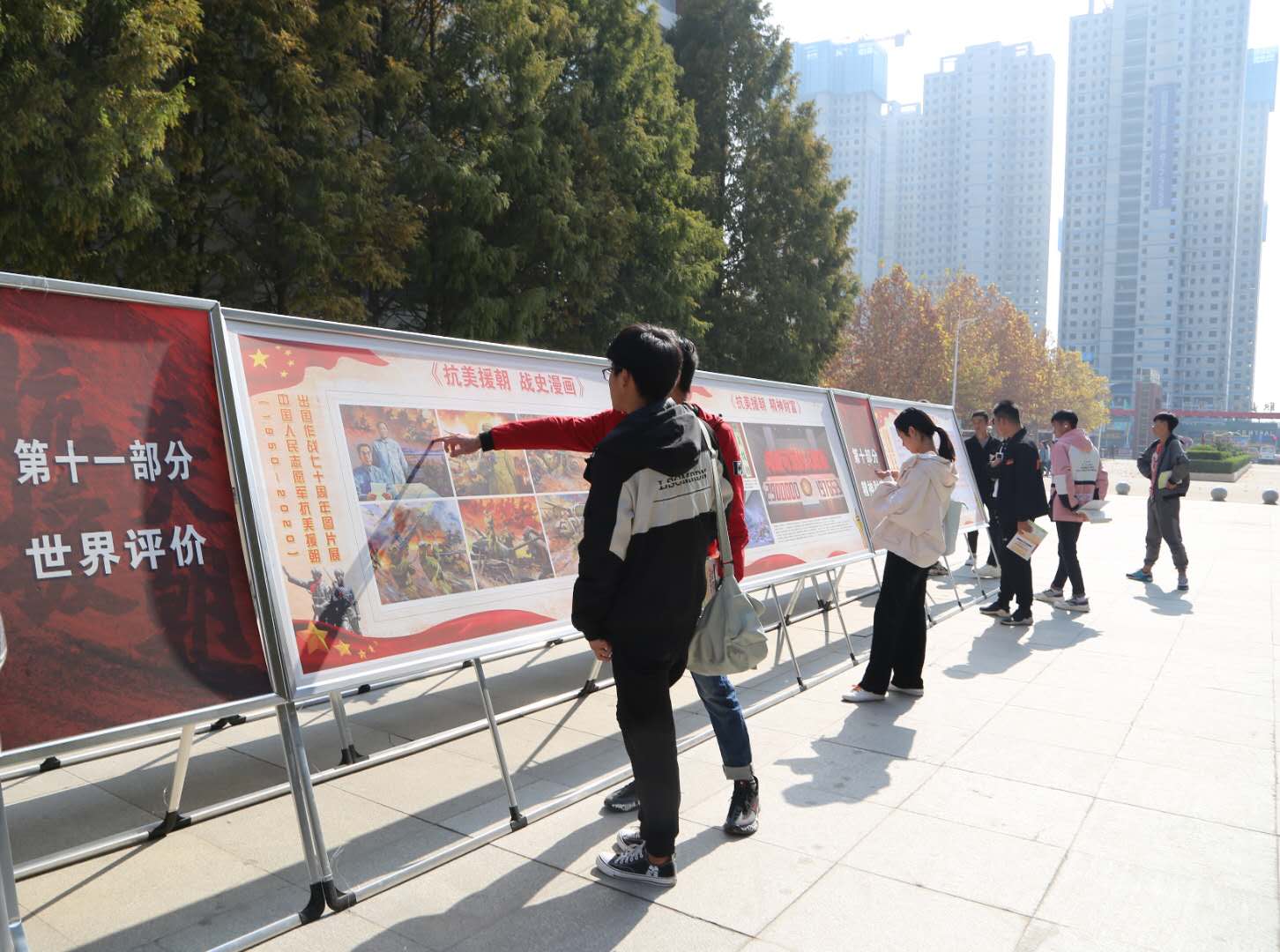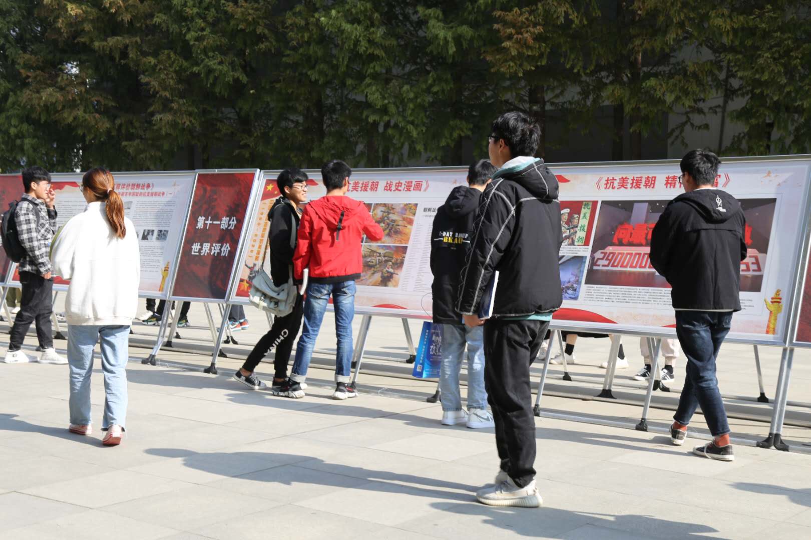 为进一步加强全民国防教育,11月9日,由市委、市政府、周口军分区举办的“铭记伟大胜利 捍卫和平正义——纪念中国人民志愿军抗美援朝出国作战70周年主题展览”在我校开展。此次展览共布展100余块宣传版面,分“决策出兵”“五次战役”“大事记略”“英雄回家”“精神财富”“周口老兵”等12个部分,全面回顾抗美援朝的重大决策过程、重大历史事件、重要战役战斗,充分展示中国人民志愿军的英雄事迹和革命精神,生动彰显中华民族众志成城、不畏强暴的坚定決心。
