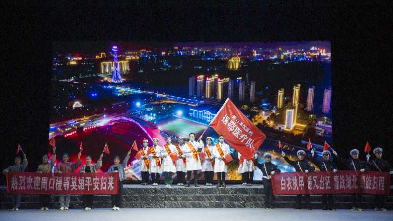 新冠肺炎疫情爆发以来,在以习近平同志为核心的党中央领导下,举国上下心往一处想、劲往一处使、拧成一股绳,通过不同方式为武汉加油助力,为打赢疫情防控阻击战作出自己的贡献。我校广大师生在校党委坚强领导下,积极响应党和国家的号召,坚定地战斗在抗“疫”一线。3月底,正是抗疫的关键时刻,国家一级演员、学前与艺术学院教授、民革中山艺术团团长刘秋红在电视上看到奋战在疫情防控一线的工作人员,不顾个人安危,舍小家为大家,与病毒做殊死搏斗。感动之余,开始酝酿策划一台反映抗疫英雄事迹的现代戏曲。在校领导大力支持下,国家一级演员、河南省越调剧团导演、民革中山艺术团副团长刘少军(原周口艺校毕业)闻讯亲任导演,80多岁吴博艺(原周口艺校校长)闻讯欣然作曲,国家一级演员、教授、民革中山艺术团团长刘秋红倾情主演,精心挑选我校申小梅艺术学院的20多名学生,在不能见面,没有专业的演出场地、器材的情况下,立即行动起来。疫情期间,50多位演职员先后克服了重重困难,经过三个月艰苦排练,2020年8月13日,《小家大爱》首场演出在周口市申凤梅艺术中心隆重举行。民革河南省委专职副主委吕心阳,周口市副市长秦胜军,周口市政协副主席、党组副书记杨珺,市政协副主席、民革周口市委主委张文平,周口职业术学院院长李清臣,市委宣传部常务副部长刘淑君,市文化广电和旅游局党组书记、局长凌全贞,市委统战部副部长王琳,扶沟县副县长吴兴华等相关领导和民革周口市委党员同志们欢聚一堂,共同观看演出。整台演出一气呵成,直击人心,震撼心灵。现场掌声经久不断,首次演出获得空前成功。
