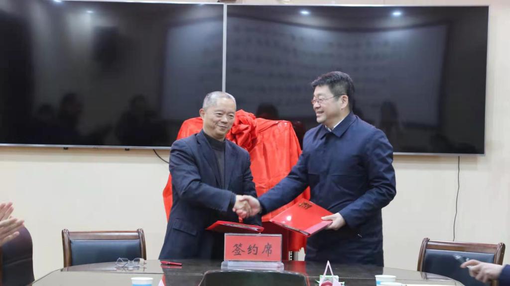 随后,副校长许永安和公司董事长刘金章进行了签约,校党委书记刘士欣和技术总监张鹏举为双方校企合作揭牌并合影留念。