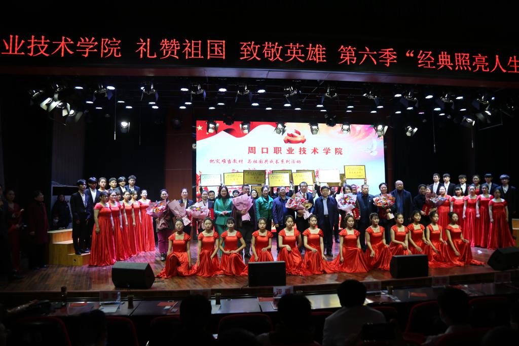 为深入贯彻落实中共河南省委高校工委、中共河南省教育厅党组《关于在全省教育系统开展“把灾难当教材 与祖国共成长”主题教育活动的指导意见》要求,在校党委正确领导下,学校先后在线上线下精心组织了“开学第一课” “安全第一,生命至上”主题班会,“抗疫情,我们在行动”主题PPT设计大赛以及主题征文、书法、绘画比赛等一系列活动。12月18日下午,礼赞祖国 致敬英雄—周口职业技术学院第六季“经典照亮人生”诵读比赛开元校区砺德厅成功举办。本次诵读比赛是这一系列活动中的一部分,以此大力弘扬爱国主义精神,让爱国主义成为校园主旋律、最强音。比赛实况在所有校区进行了同步直播。