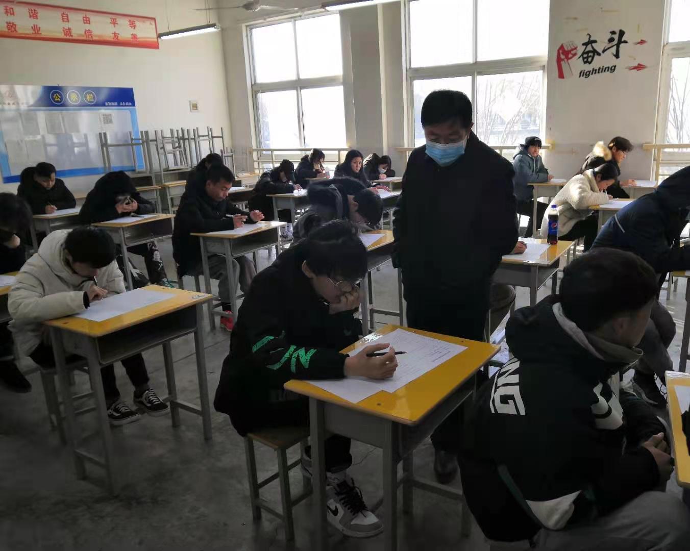 1月8日至9日,我校2020至2021学年度第一学期期末考试顺利进行。校党委书记刘士欣、校长李清臣、副校长许永安在教务处人员陪同下分别到开元校区、文昌校区考场巡视期末考试组织和学生考风考纪情况。