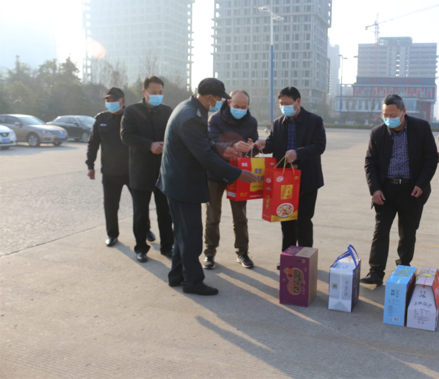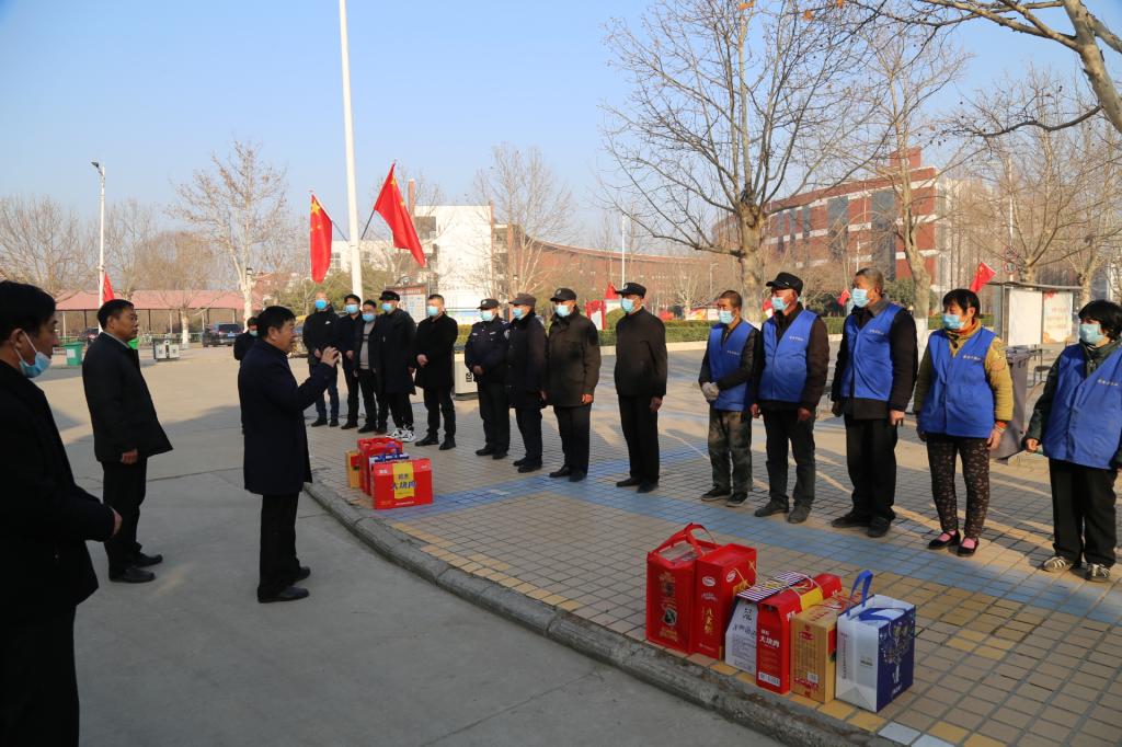 校领导一行先后来到开元校区、文昌校区和中州校区,看望慰问正在值班的学校安保队员、环卫人员以及物业保障工作人员等,询问值班情况,对大家在春节期间坚守岗位、辛勤工作表示衷心感谢,并送上节日慰问品,祝大家新年快乐。一声声问候,一句句祝福,充满着浓浓关爱。