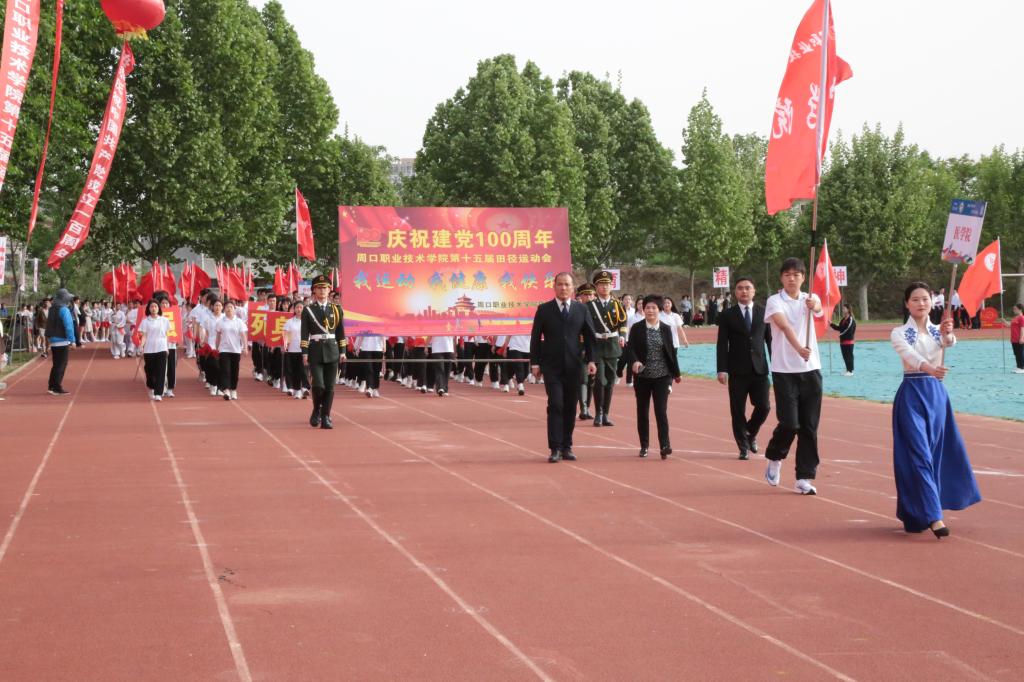 春和景明,百花绽放;绿草如茵,万木竞秀。4月29日上午,周口职业技术学院第十五届田径运动会开幕式在开元校区田径场隆重举行。周口市人民政府副市长梁建松,市政府副秘书长朱化礼,全体校领导、各教学院(部)、各行政和教辅部门的主要负责人出席开幕式。开幕式由校党委书记刘士欣主持。