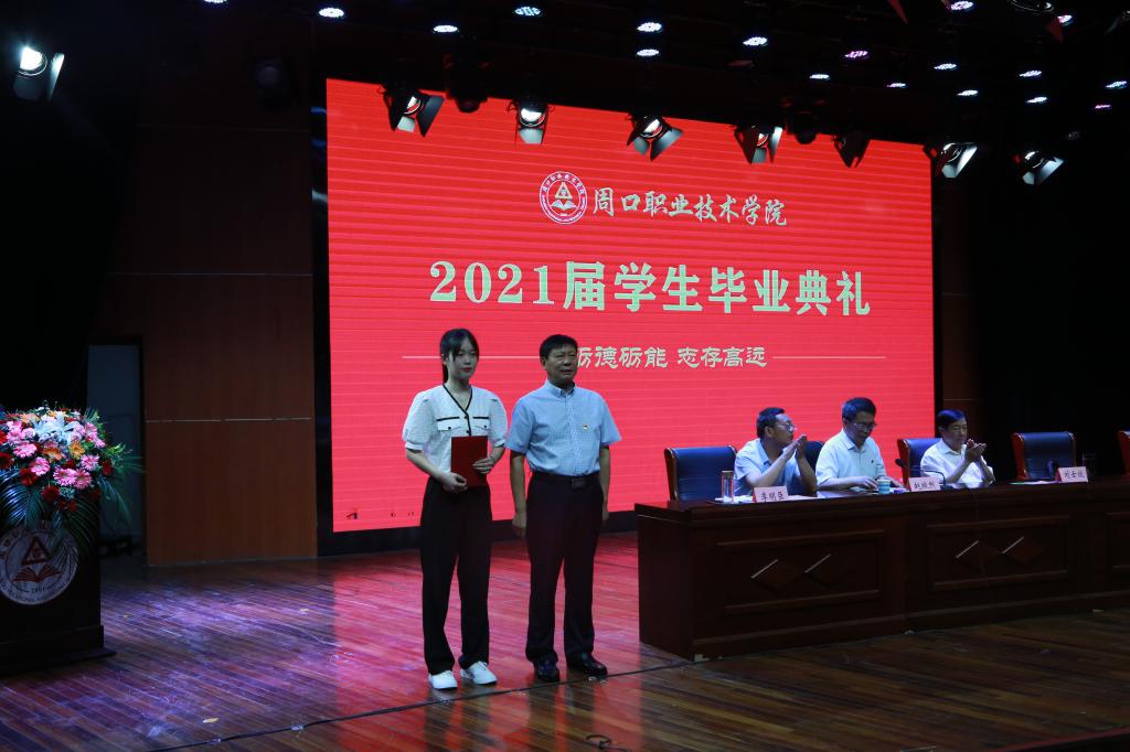 上午8时,典礼在庄严的国歌声中拉开帷幕。校党委副书记、工会主席李庶泉教授宣读《河南省教育厅关于表彰2021年河南省优秀应届大中专毕业生的决定》、《周口职业技术学院关于表彰2021年优秀大中专毕业生的决定》。宣读完毕后,校领导为徐红梅等83名省级优秀毕业生、赵振等238名校级优秀毕业生颁发荣誉证书。