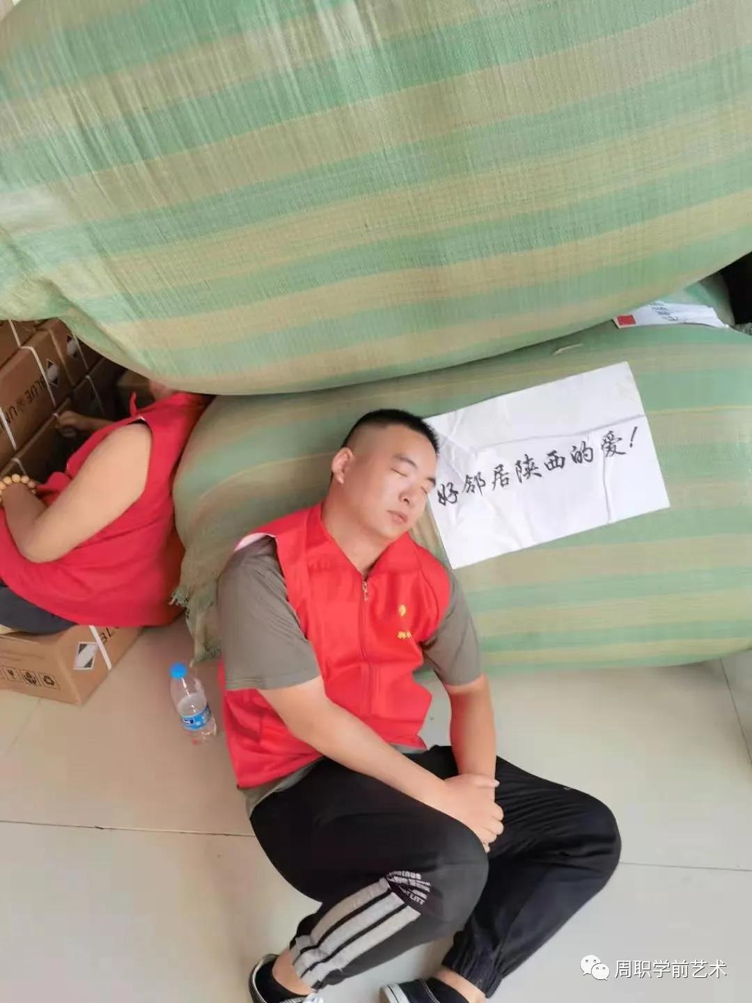 我校20级音乐教育一班樊龙飞同学的家乡荥阳是此次暴洪的重灾区,7月22日樊龙飞同学积极响应荥阳团市委的号召,自愿加入荥阳青年志愿者队伍,参加抗洪救灾工作。据了解当时樊龙飞同学家中已被淹,但他舍小家保大家,第一时间跟随志愿者队伍到达抗洪现场,负责为来自各个地区的救援车队装卸物资。从早上八点持续工作到夜晚十一点,累得坐在地上就睡着了。樊龙飞是贫困生,他表示国家给予贫困生许多资助,这也算是在力所能及范围内对于国家和社会的一点回报。