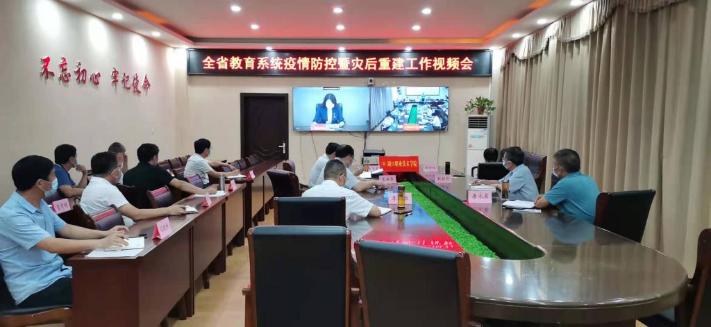 8月9日下午,全省教育系统疫情防控暨灾后重建工作视频会议召开,我校全体校领导出席,各疫情防控工作专班负责人在开元校区第三会议室分会场收听收看会议。