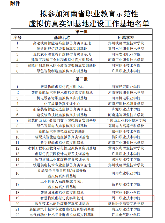2021年7月初,根据教育部《关于开展职业教育示范性虚拟仿真实训基地建设的通知》(教职成司函〔2020〕26号)和《河南省教育厅办公室关于开展河南省职业教育示范性虚拟仿真实训基地建设工作的通知》(教职成函〔2021〕360号)的要求,结合教学实际,在学校和企业的大力支持下,我校成功申报,并进入拟参加河南省职业教育示范性虚拟仿真实训基地建设工作基地名单。