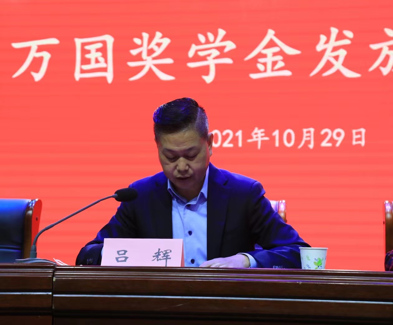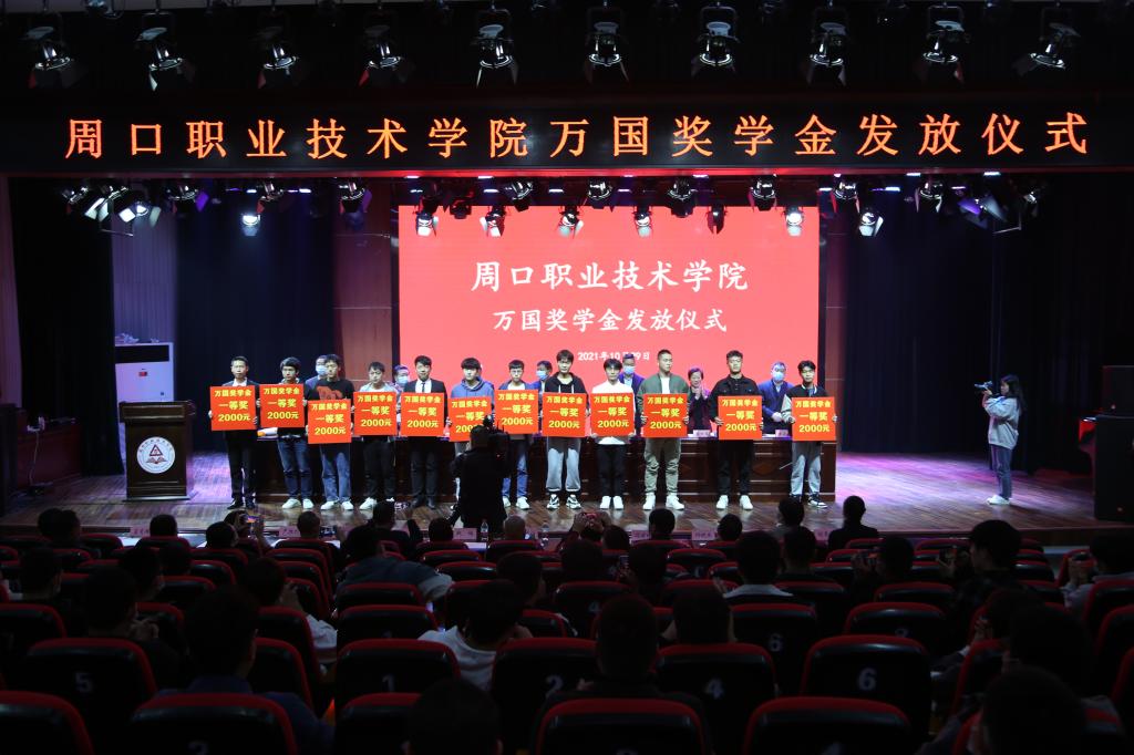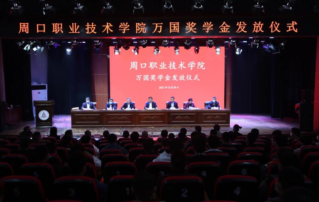 10月29日上午,学校在开元校区砺德厅举行万国奖学金发放仪式。万国集团董事长兼周口汽车服务业商会会长吕辉,周口职业技术学院校长李清臣,副校长李明臣、李秀萍,万国集团副总经理邝金生、朱永兴,万国集团副总经理兼万国运营总经理赫然等出席活动。副校长李秀萍主持活动。