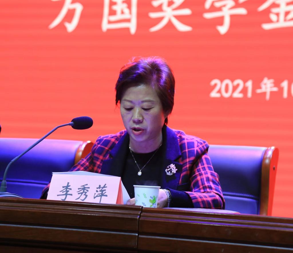 发放仪式上,李秀萍对万国集团公司吕辉一行的到来表示热烈的欢迎和真诚的感谢!她宣读了《关于表彰万国奖学金获得者的决定》,与会领导为2020级汽车专业76名学生分别颁发了2000元、1500元、1000元奖学金。