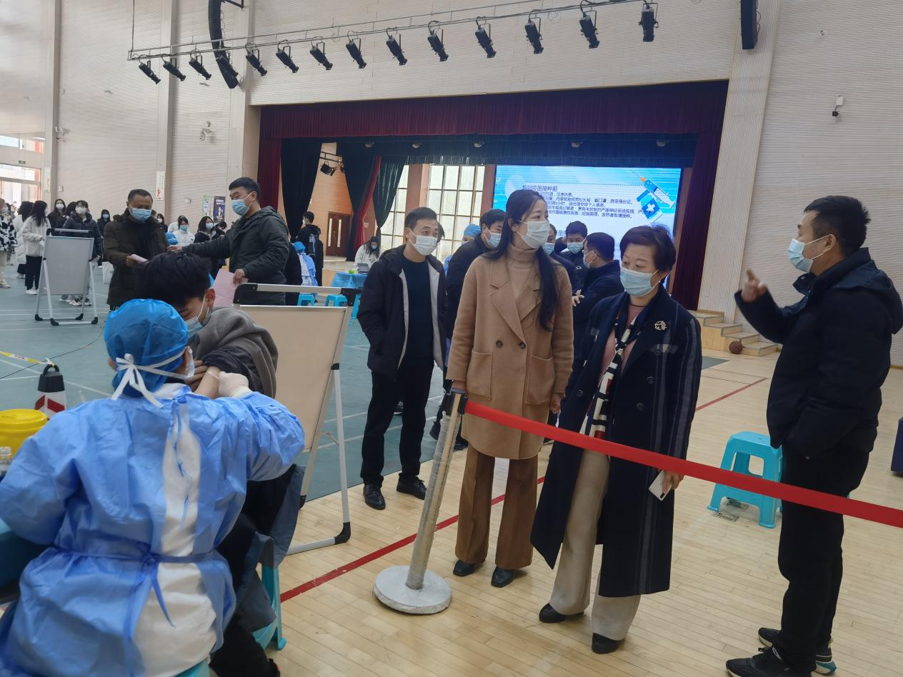副校长李秀萍一行深入现场检查指导疫苗接种工作,亲切慰问进行疫苗接种的师生,了解疫苗接种后的感受,对大家积极接种疫苗、共筑免疫屏障的行为表示赞赏,并叮嘱大家放松心态、注意休息。