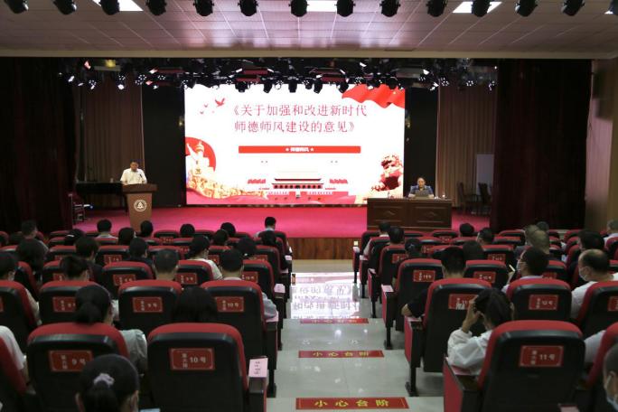 李庶泉以“师德师风建设”为主题,带领大家学习教育部《关于加强和改进新时代师德师风建设的意见》,并从“加强师德师风建设的总体要求”“全面加强教师队伍思想政治工作”“大力提升教师职业道德素养”“将师德师风建设要求贯穿教师管理全过程”“着力营造全社会尊师重教氛围”“推进师德师风建设任务落到实处”六个方面对师德师风建设展开详细解读。勉励大家要做一个有信仰的教师,不忘立德树人初心,牢记“为党育人、为国育才”使命,做好“四个引路人”,坚持“四个相统一”,争做新时代“四有好老师”。