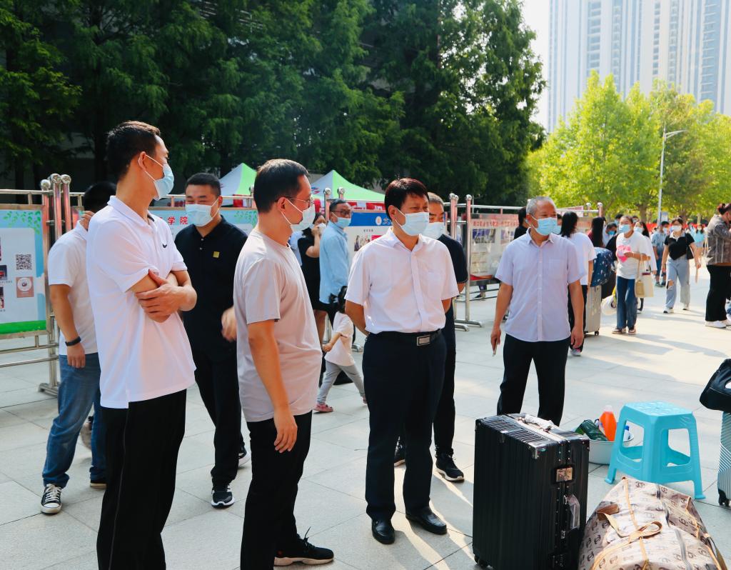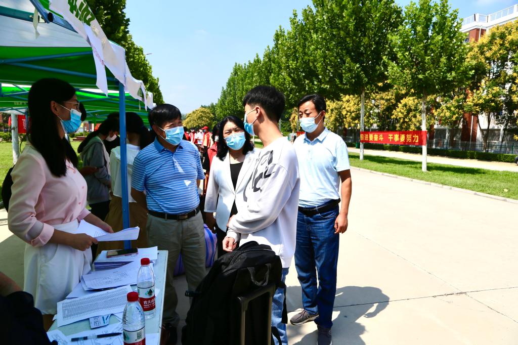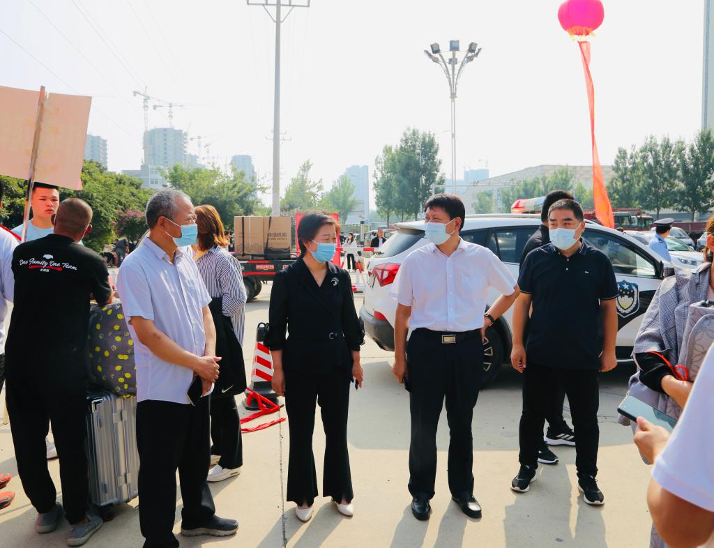 学校党委书记刘士欣、校长李清臣,副校长李秀萍在党政办、学生处、后勤处、保卫处等相关部门负责人陪同下,深入迎新现场检查指导工作,并与现场工作人员、志愿者以及2022级新生和家长亲切交谈。