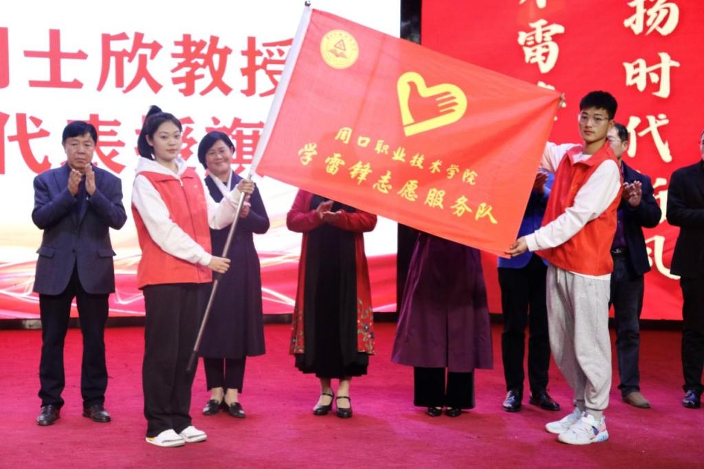 校党委书记刘士欣为学雷锋志愿服务队授旗,并宣布学雷锋系列活动正式启动。