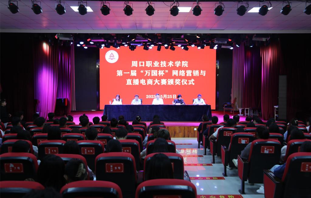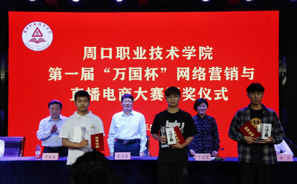 5月25日上午,周口职业技术学院第一届“万国杯”网络营销与直播电商大赛颁奖仪式在开元校区演播厅成功举办。校长李清臣,副校长于爱霞,河南万国集团副总经理邝金生,河南万国集团副总经理、周口职业技术学院万国汽车商学院院长赫然出席,仪式由教务处处长李嘉主持。