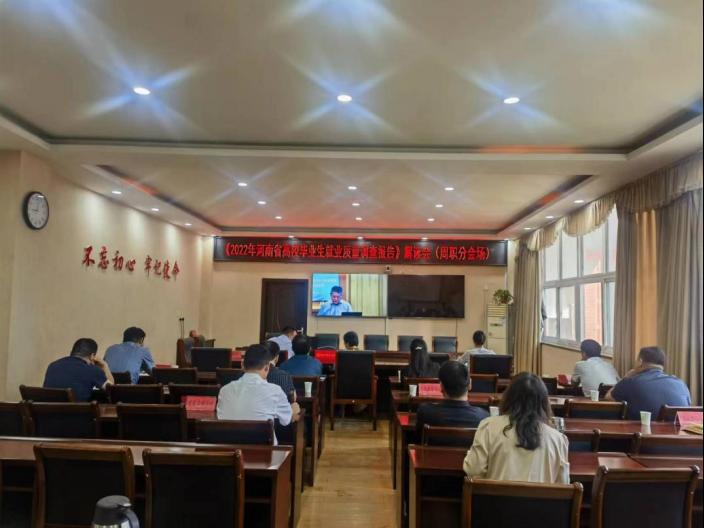 9月22日上午,我校在开元校区第三会议室设分会场,组织参加省教育厅《2022年河南省高校毕业生就业质量调查报告》解读会,副校长李秀萍出席会议。党政办、教务处、学生处负责人,各二级院部党总支书记及招生就业处全体人员参加会议。