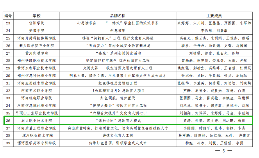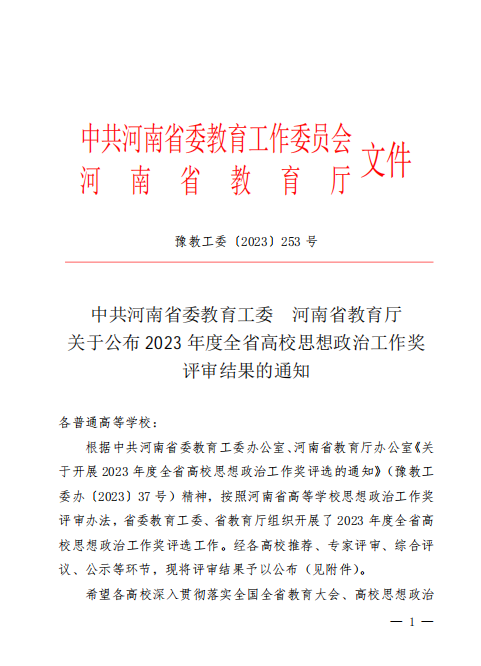 近日,由中共河南省委高校工委、河南省教育厅组织开展的2023年度全省高校思想政治工作奖评选结果揭晓,周口职业技术学院马克思主义学院申报的《“课社协同”思政育人模式》荣获“河南省高校思想政治工作优秀品牌”。