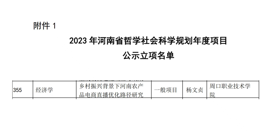 近日,河南省哲学社会科学工作事务中心下发2023年度河南省哲学社会科学规划项目立项通知,我校教师杨文贞主持的经济学一般项目《乡村振兴背景下河南农产品电商直播优化路径研究》成功获批立项。