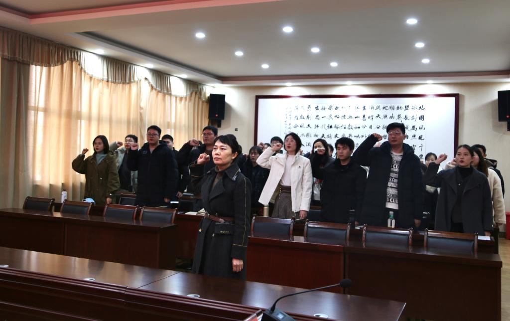 开班仪式上,李明臣宣读培训方案并强调此次培训的目的及纪律要求;人事处处长唐文杰带领新聘教师进行入职宣誓;新聘教师朱冰茹作代表发言。