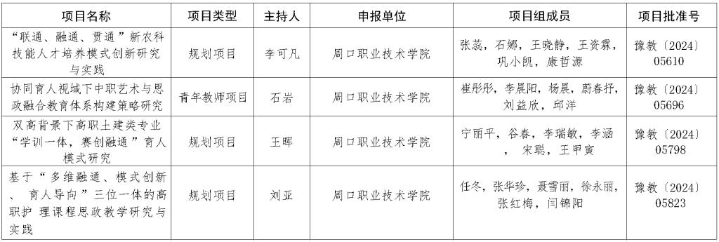 附:我校2023年河南省职业教育教学改革研究与实践项目立项名单