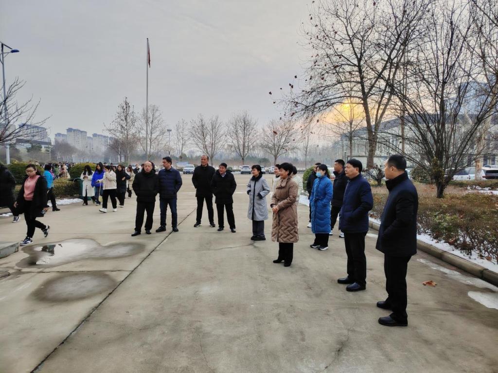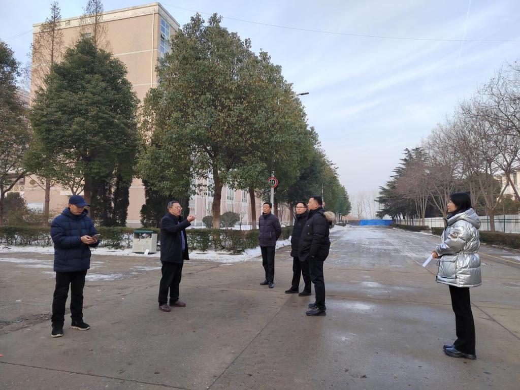 校长李清臣,党委副书记、工会主席郭汝礼,副校长于爱霞在文昌校区巡视