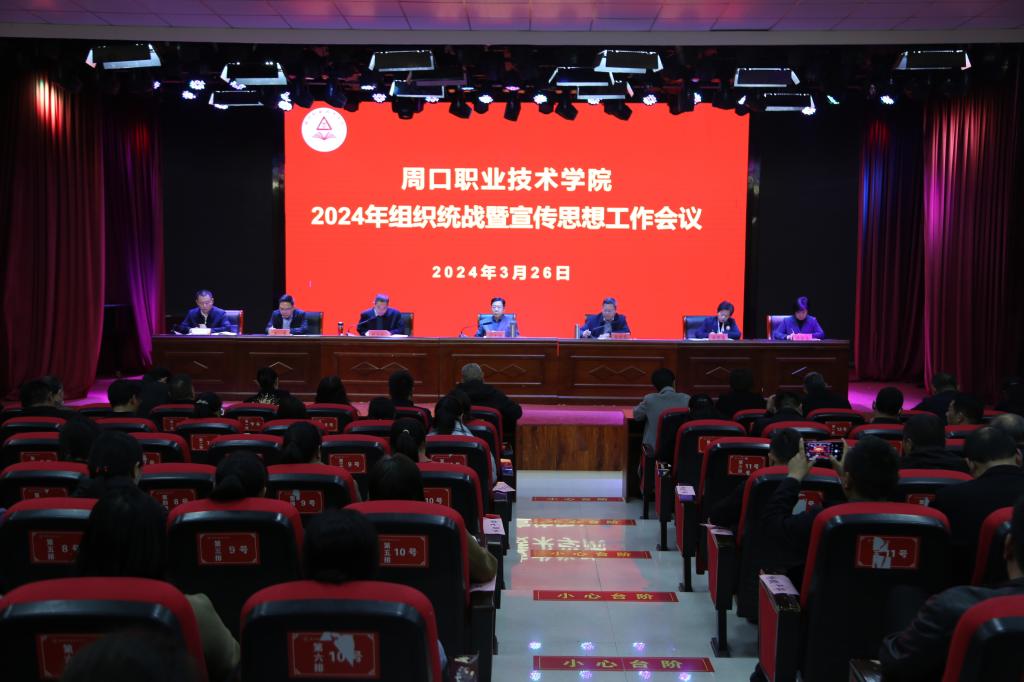 3月26日下午,学校在开元校区艺术演播厅召开2024年组织统战暨宣传思想工作会议。在周校领导出席,全体副科级及以上干部参加会议。纪委书记李向东主持。