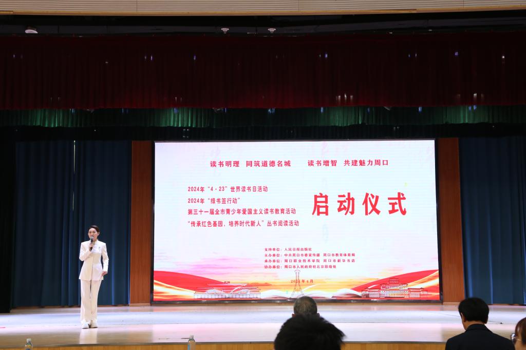 春日芳菲好,读书正当时。4月23日,周口市2024年“4·23”世界读书日系列活动启动仪式在周口职业技术学院体育馆成功举行。市委常委、宣传部长王少青,人民日报出版社总编辑丁丁,市委宣传部常务副部长李向宏,周口职业技术学院党委书记刘士欣,党委副书记、工会主席郭汝礼出席。