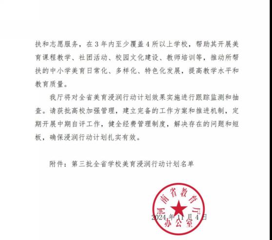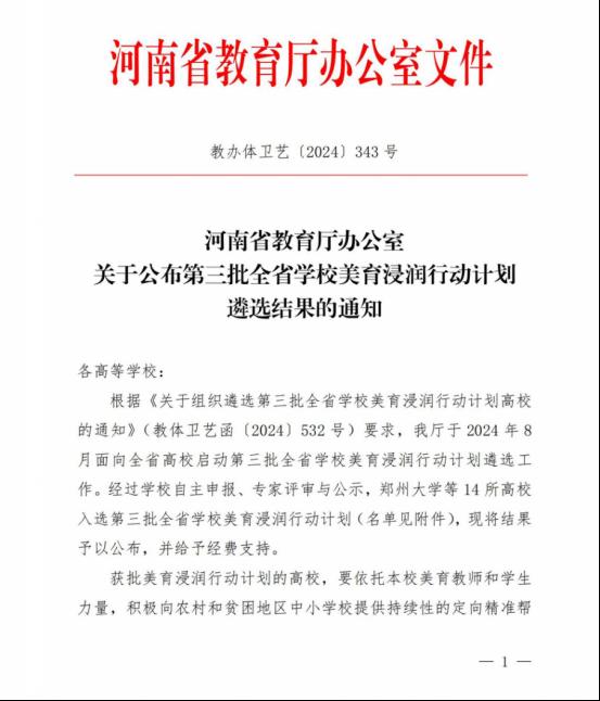 近日,河南省教育厅公布了第三批全省学校美育浸润行动计划入选名单,经学校自主申报、专家评审与公示,我校成功入选。