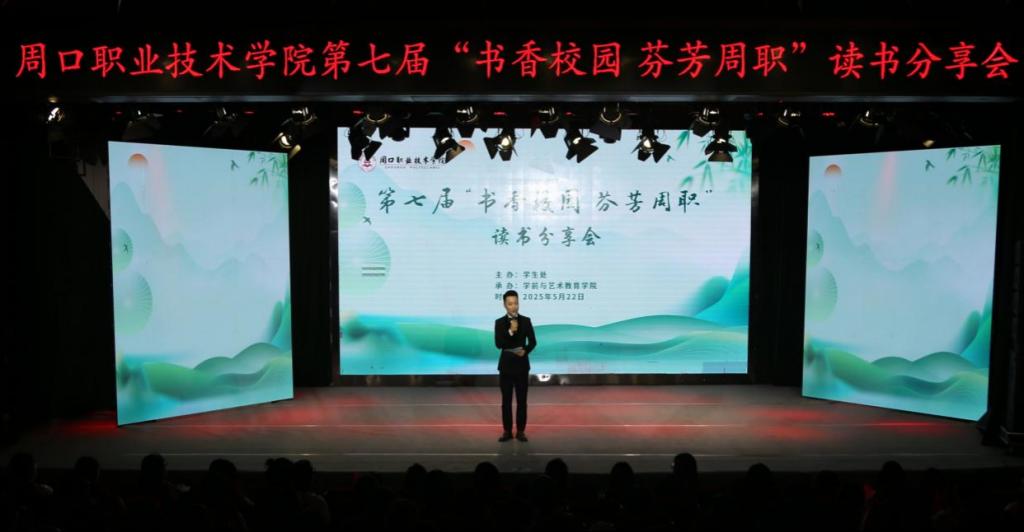 5月22日下午,周口职业技术学院第七届“书香校园 芬芳周职”读书分享会在开元校区砺德厅成功举办。校长李清臣,校领导郭汝礼、李秀萍出席。各职能部门、教学院(部)主要负责人及师生代表齐聚一堂,共赴文化盛宴。
