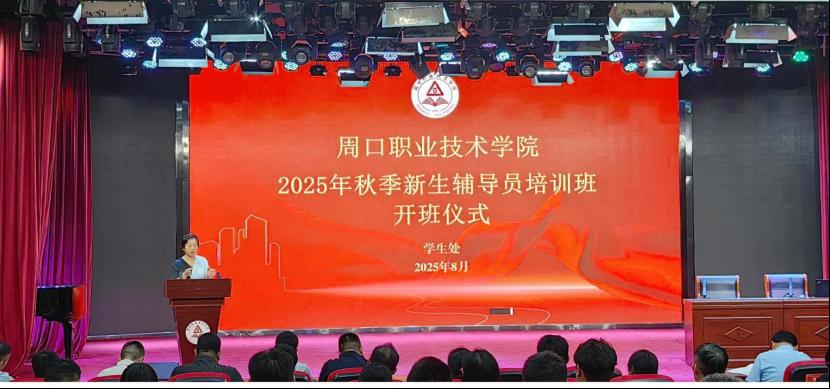 为进一步加强我校辅导员队伍建设,全面提升辅导员队伍政治素质、业务能力和育人水平,8月27日,周口职业技术学院2025年秋季新生辅导员培训班在开元校区艺术演播厅开班。副校长李秀萍出席开班仪式并讲话,各二级学院(部)党总支书记、学管副院长、学管办主任及全体新生辅导员参加。学生处处长刘冬霞主持。
