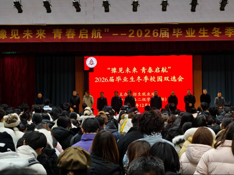 12月12日下午,学校“遇见未来 青春起航”2026届毕业生冬季校园双选会在开元校区体育馆成功举办。副校长王隼出席,各二级学院(部)党总支书记、学管副院长及600多名毕业生代表参加开幕式,招生就业处处长许建国主持。