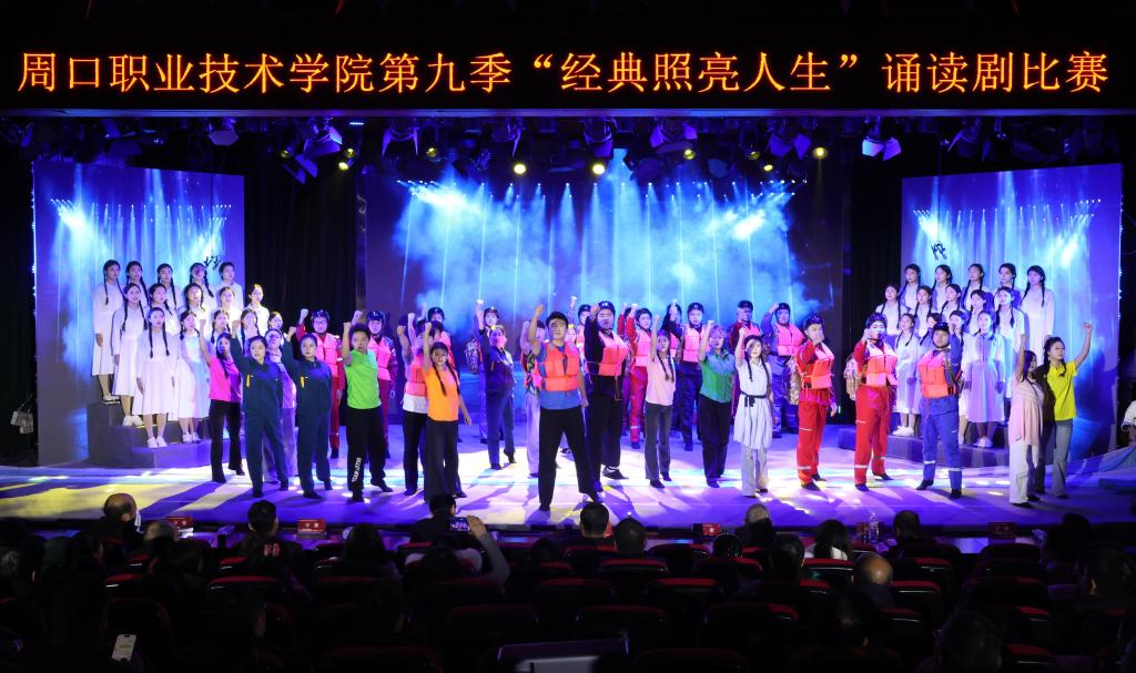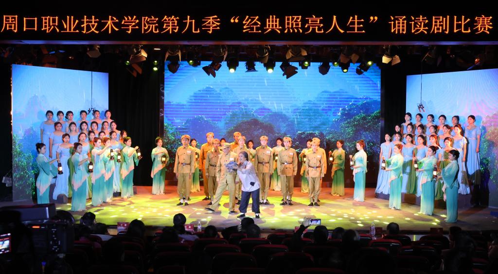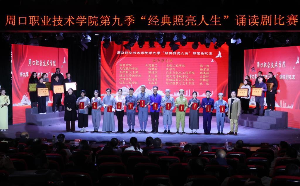 为切实落实立德树人根本任务,深入学习贯彻伟大建党精神,传承红色基因,12月25日下午,弘扬建党精神,培育时代新人——周口职业技术学院第九季“经典照亮人生”诵读比赛在开元校区砺德厅成功举办。周囗中华职教社秘书长郑立冬、周口市中小企业商会会长杨留峰等嘉宾,校长李清臣,校领导李明臣、李秀萍、王隼、于爱霞、李向东,学校各相关职能部门、二级院部主要负责人及800余名师生共同观看。