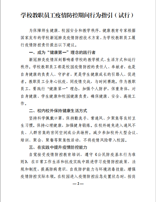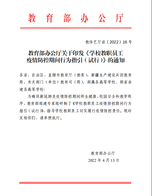 教育部办公厅关于印发《学校教职员工疫情防控期间行为指引(试行)》的通知
