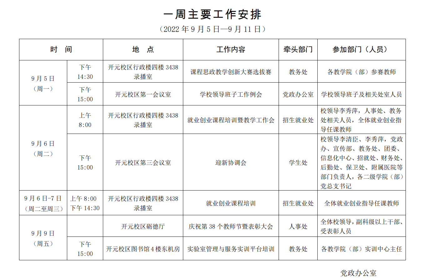 一周主要工作安排(2022年9月5日—9月11日)