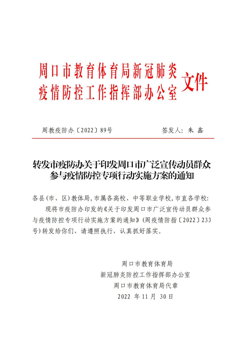 市疫防办关于印发周口市广泛宣传动员群众参与疫情防控专项行动实施方案的通知