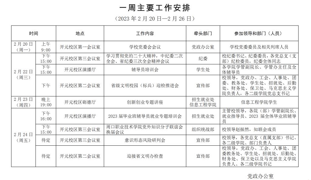 一周主要工作安排(2023年2月20日—2月26日)