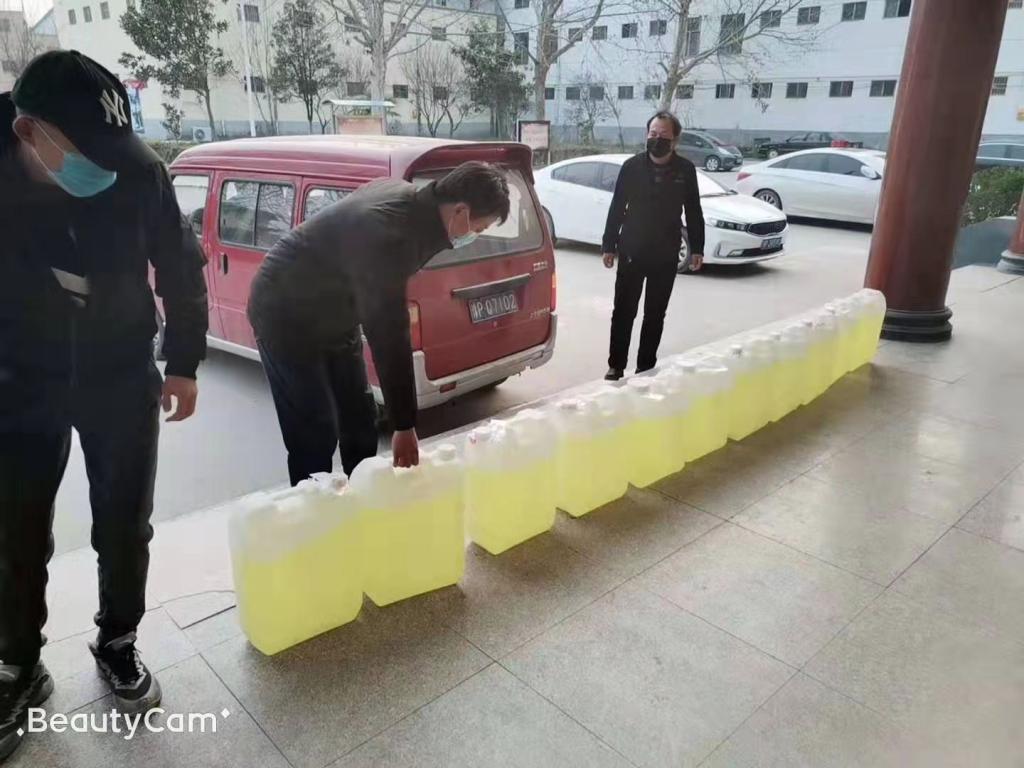 然而,爱心助力没有停止,周口职业技术学院驻村工作队接到中药后并没有自己服用,而是连同另外购置的600斤消毒夜一起,送到了当地防疫一线干群手中。