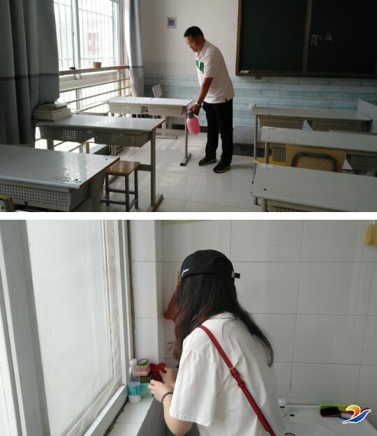 昔日学生们的良师益友化身“保洁员”。这次大扫除,教职工根据不同区域分组包片,齐上阵,齐动手,扫地拖地、喷洒消毒液,对室内外走廊、地面、以及学生宿舍、教室进行全面消杀和清扫,为学生返校创设健康、安心的学习环境。