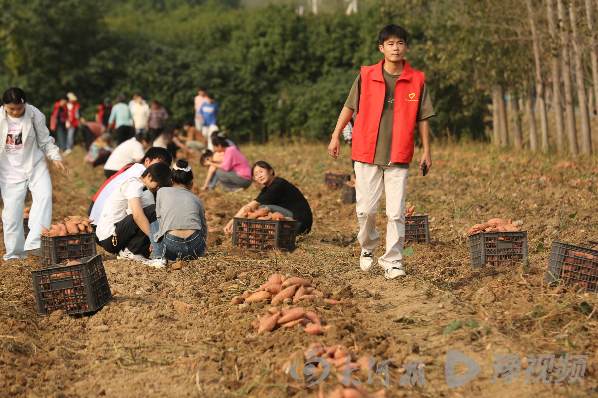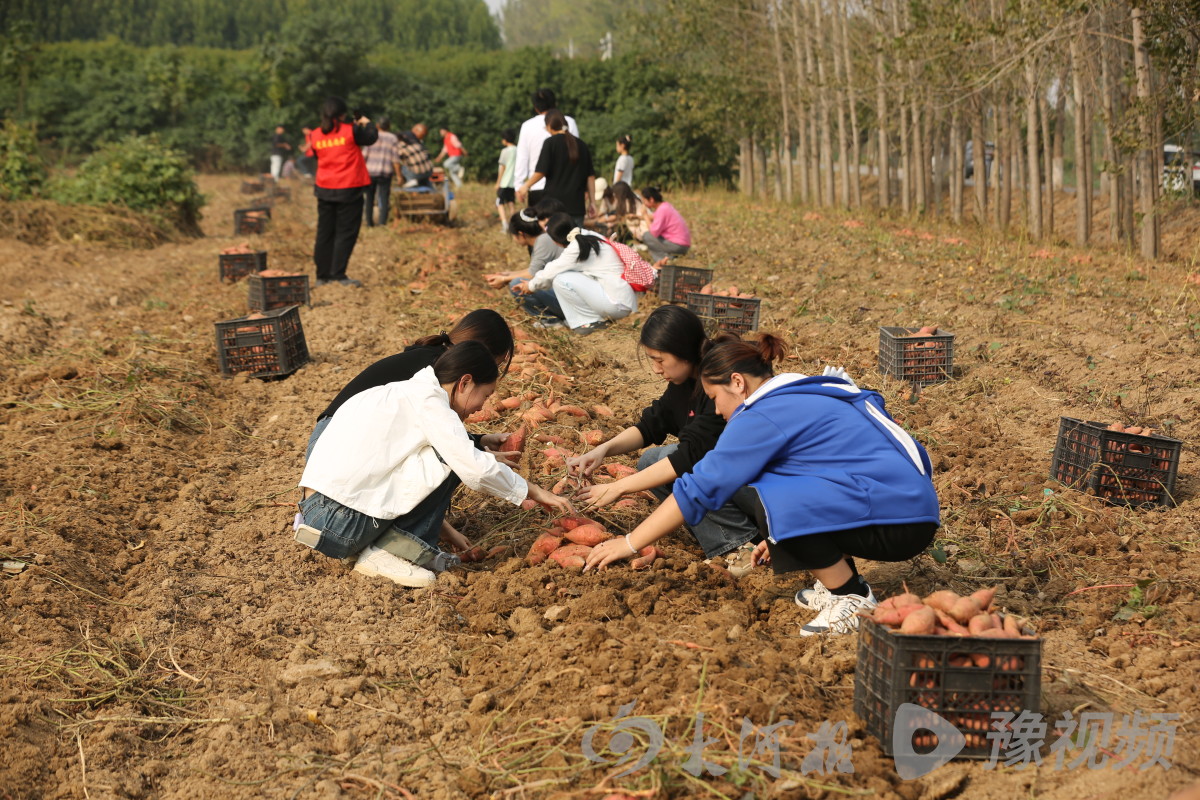 10月15日,秋收刚过,田野里一望无际。周口市商水县黄寨镇的蜜薯产业园内,晃动着一个个青春的身影。他们有的忙着挖蜜薯,有的直播卖蜜薯,蜜薯地里充满了欢声笑语。