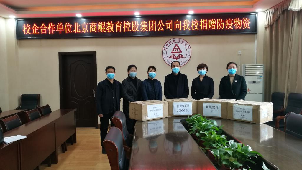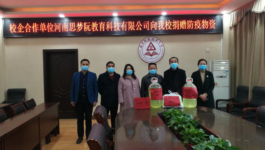 3月31日,校企合作单位河南思梦阮教育科技公司、北京商鲲教育集团分别向我校捐赠额温枪、消毒液、防护口罩等防疫物资,以实际行动助力我校抗击新冠肺炎疫情,守护学校师生健康。此举展现了企业高度的社会责任感,也表达了与我校师生同舟共济的深厚情谊。我校党委副书记、工会主席李森代表学校全体师生对这三家企业的爱心之举表示了诚挚的感谢。
