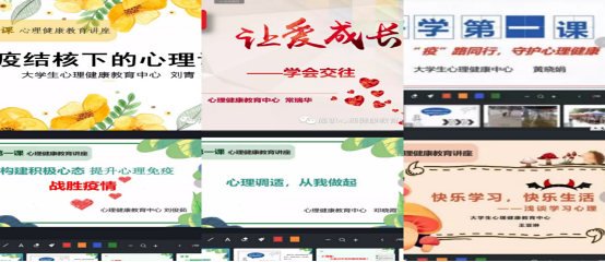 刘青老师以“涝疫结核下的心理调适”为主题、黄晓娟老师以“疫路同行,守护心理健康”为题、刘俊茹老师以“构建积极心态,提升心理免疫”为主题、邓晓霞老师以“心理调适,从我做起”为主题、常瑞华老师以“学会交往 让爱成长”为主题、王亚琳老师以“快乐学习,快乐生活”为主题、邱洋老师以“新开始,新成长”为主题、李花老师以“大学伊始,从心开始”为主题、张田孟老师以“大学生活,从心开始”为主题、张梦柔老师以“新生活,心适应”为主题、张文华老师以“心赋能,新成长”为主题,与各二级学院的大一学生进行了交流和沟通。